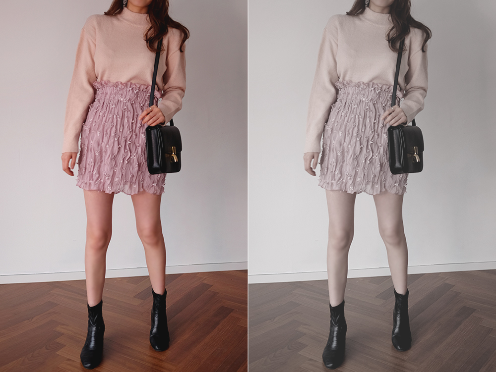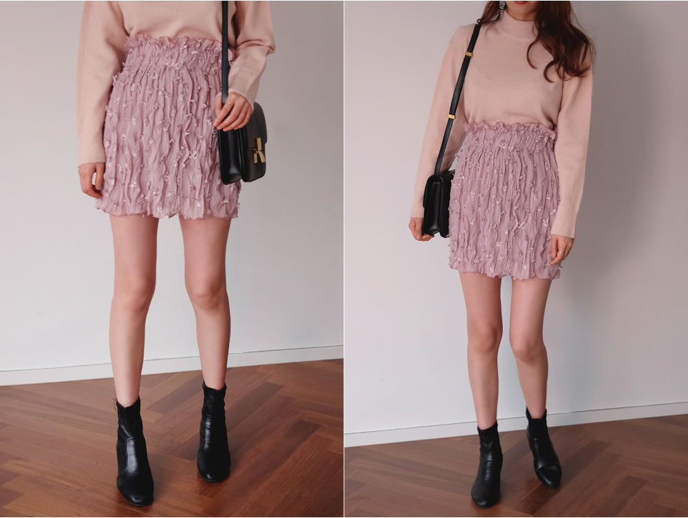 A라인 실루엣으로 연출되는 아이템으로 허벅지 군살커버에도 용이하고요-