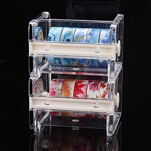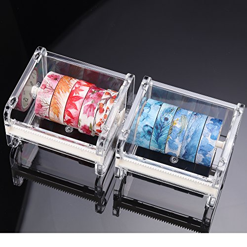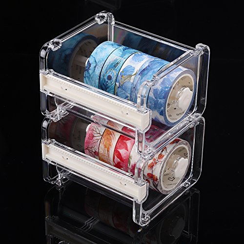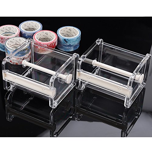 Molshine 2 Pack Transparent Visible Desktop Tape Dispenser Tape Cutter (Not Include Masking Tape)-Beige