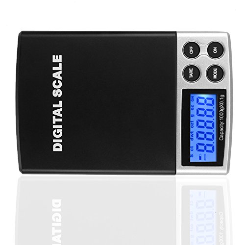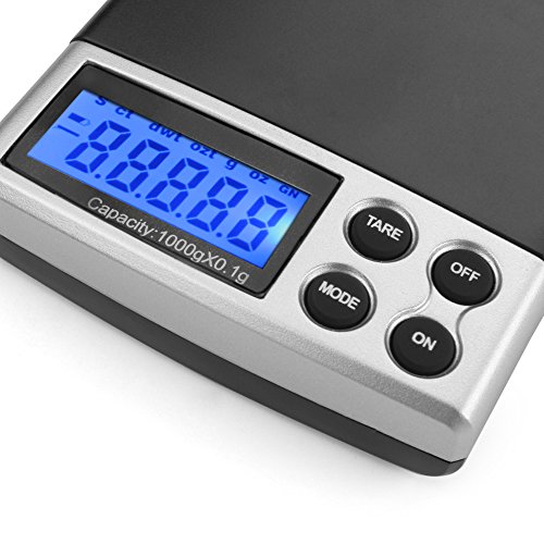 1000g capacity and 0.1g readability; Powered by 2 AAA batteries (not included)