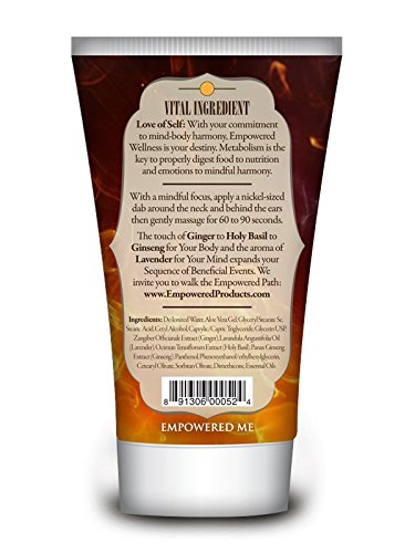 The touch of ginger to holy basil to ginseng for your body and the aroma of lavender for your mind expands your sequence of beneficial events. Love of self: with your commitment to mind-body harmony, empowered wellness is your destiny. Metabolism is the key to properly digest food to nutrition and emotions to mindful harmony. With a mindful focus, apply a nickel-sized dab around the neck and behind the ears then gently massage for 60 to 90 seconds.Feature
