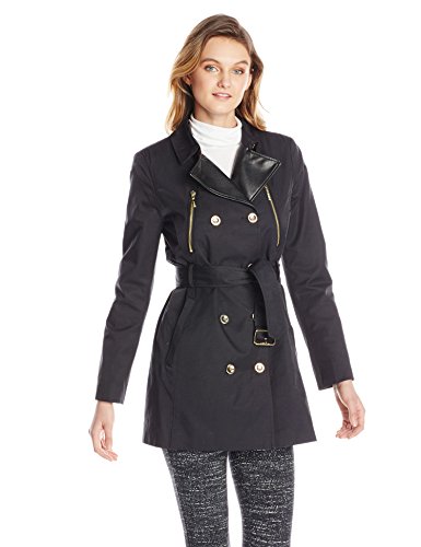 Double breasted trench with polyurethane trim details