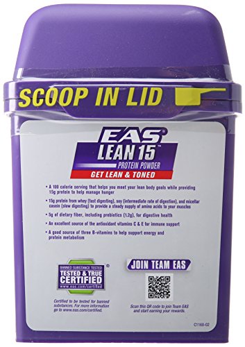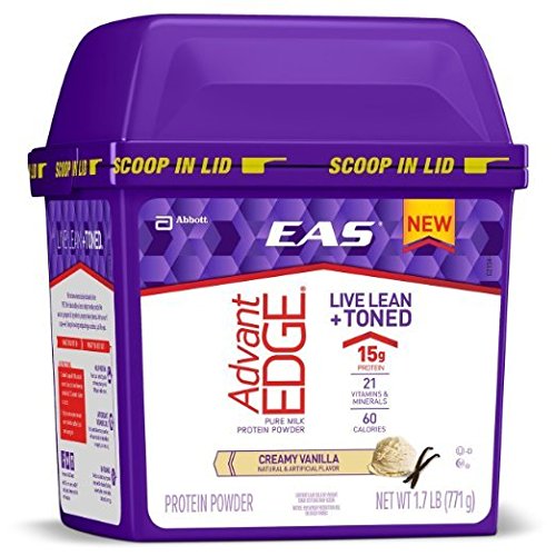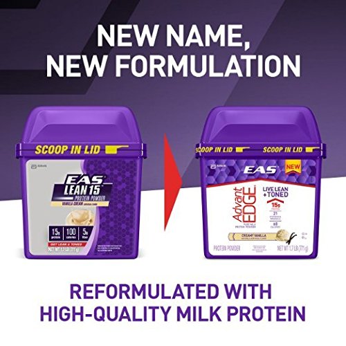 -. Binding : Health and Beauty -. Brand : EAS -. EAN : 0791083634700 -. Feature : A 100-calorie serving helps you meet lean body goals and helps manage hunger / 15G of protein from fast-digesting whey and slow-digesting micellar casein deliver a steady supply of amino acids to your muscles / 5 gram of dietary fiber-including 1.2 Gram prebiotics-promote digestive health / Antioxidant vitamins c and e and selenium for immune support -. Label : EAS -. Manufacturer : EAS -. PackageQuantity : 1 -. ProductGroup : Pantry -. ProductTypeName : HEALTH_PERSONAL_CARE -. Publisher : EAS -. Studio : EAS -. Title : EAS AdvantEDGE Pure Milk Protein Powder, Creamy Vanilla, 1.7lb (Formerly EAS Lean 15) (Packaging May Vary) -. UPC : 791083634700