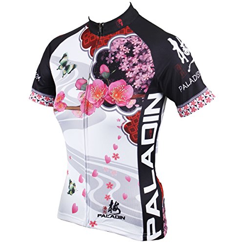 Paladin Cycling Clothing for Women Short Sleeve Plum Flower Pattern Bike Shirt Size L