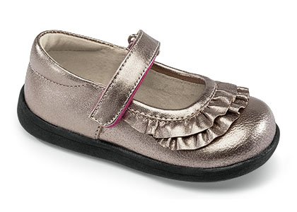 Studio : See Kai Run, LLC Publisher : See Kai Run, LLC Binding : Apparel Product Description We have been waiting for these metallic copper ruffle mary janes for months! She will receive so many compliments sporting girly ruffles pairing with unique color. With contrasting stitching. Handcrafted from butter-soft leather. Flexible rubber sole healthy for developing feet but sturdy enough for outdoor play! Generous width and wide toe box for plenty of wiggle room! Adjustable Velcro closures make shoes easy to get on and ensure a great fit. Padded collars for extra comfort. Breathable leather insole and lining. Import. Choose from blue or white.