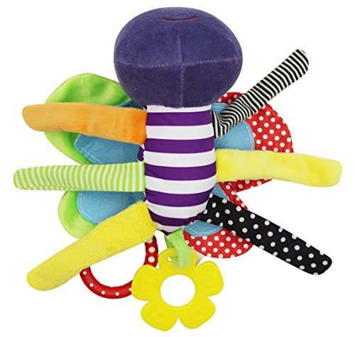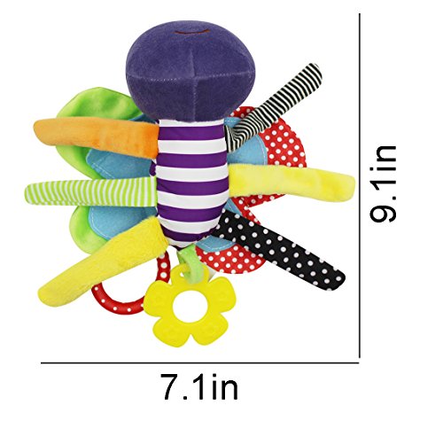 Built-in rattle in the,babies will love to shake it. It can attract baby's attention,have baby entertained for hours while stimulating their fine motor skills and auditory senses.Pratices babies' arm strength.There is a Bpa-free teether in the tail.