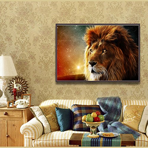 Fipart DIY diamond painting cross stitch craft kit. Wall stickers for living room decoration. Lion (12X18inch / 30X45CM)