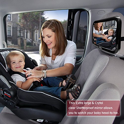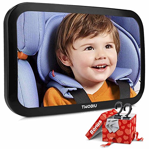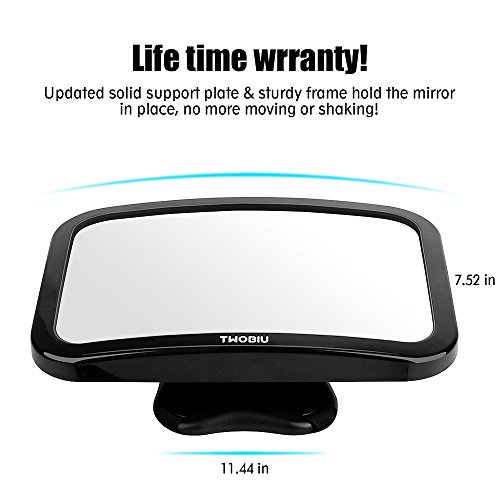 Wide, Clear View: TWOBIU baby mirror for car (11.4x7.5inches) gives you a wide and clear view to watch your baby's head-to-toe reflection in your rear view baby mirror. With this infant car mirror baby could entertain herself and make sure parents feel at ease about driving with their babies.