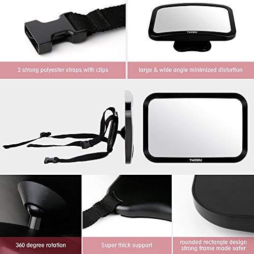 Assemble-free & Strong Straps: The 2 tightening straps and buckles of this car mirror for rear facing car seat are also strenthened to a more durable polyester material. Assemble-free design makes it so easy to install. Just buckle on, tighten the straps, adjust the angle, and you are good to go!