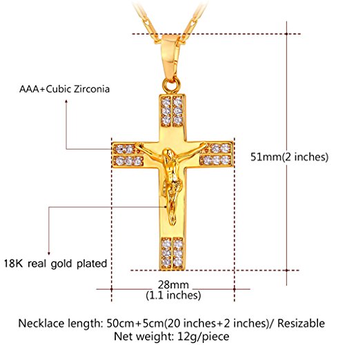 -. Title : U7 Platinum/18K Gold Plated Cross Crucifix Pendant Necklace 22 Inch