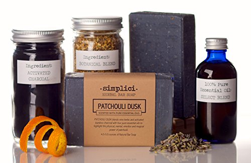 Skin loving herbs add a bold texture to this activated charcoal soap -naturally scented with the pure essential oils of Patchouli, Rosewood, Sweet Orange and Lavender.