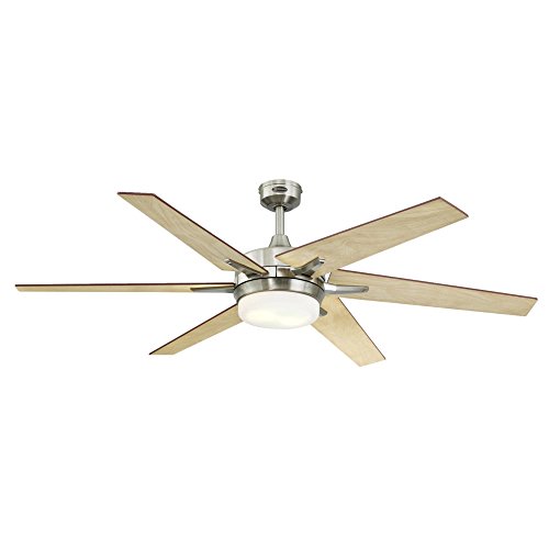 Complement your home's interior decor with the impeccably designed Westinghouse Cayuga ceiling Fan. Generously sized, the Six-Blade, 60-inch Cayuga Fan features a unique detail, off-center blade brackets, that lend an eye-catching slant to the blades. Choose one of two blade finishes to coordinate with the striking brushed nickel fan-rosewoodd finish for rich contrast, or light maple finish for a neutral contemporary look. The Cayuga ceiling Fan provides energy-efficient air circulation and the energy-saving benefits of LED lighting. Long-lasting, dimmable leds eliminate the need to change bulbs in hard-to-reach ceiling fans while providing bright illumination. A convenient remote control is included for operation of Fan and light kit. Westinghouse is a trusted, global brand. Westinghouse knows lighting and offers products with exceptional quality, reliability and functionality. Product reference number 72077.Feature