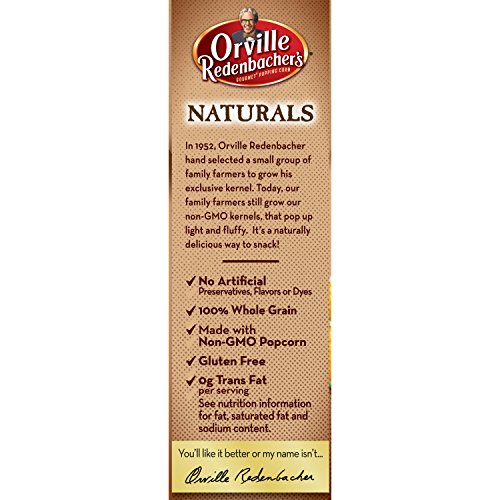 Who says you can't rush perfection? Orville Redenbacher’s Naturals Simply Salted Popcorn pops up in minutes. Orville Redenbacher’s Naturals Simply Salted Popcorn has 0 grams of trans fat per serving and is whole-grain popcorn perfection in its purest form. But what makes our microwave popcorn so perfect? It's an exclusive kernel hybrid that pops up lighter and fluffier than ordinary popcorn. This, combined with our commitment to quality, makes us the #1 popcorn for families everywhere. Enjoy this delicious, better-for-you snack that’s ready in minutes.