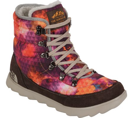 Be protected this winter wearing the The North Face Thermobol Women's Lace Up Snow Boots! These feature: Fleece-lined collar with protective synthetic mudguard, rubber IcePick temp sensitive lugs for increased traction, insulated, and water resistant ripstop upper. The North Face delivers an extensive line of performance apparel, equipment, and footwear. They push boundaries of innovation so that you can push the boundaries of exploration. They remain deeply proud to be the first choice of the world's most accomplished climbers, mountaineers, extreme skiers, snowboarders, endurance runners, and explorers.Feature