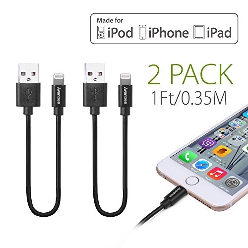 [Apple MFi certified] 2-Pack Avantree short lightning cable / Lightning to USB cable for fast data sync and charge, 1ft / 0.35M Tangle-free mfi lightning cable compatible with Apple iOS all versions