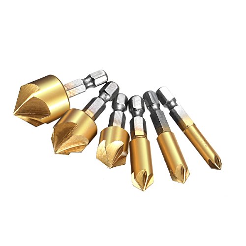 Baban 6 Pcs 1/4'' Hex Shank HSS 5 Flute Countersink Drill Bit Set 90 Degree For Wood Quick Change Bit 6mm-19mm