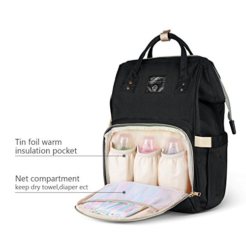 Fantasy D is the only seller of Smilism Diaper Bag Backpack!!! Other sellers are selling inauthentic products, don't believe them or you will get a fake. ●Insulated PocketsThere are 3 bottle holders in the front of the bag separated from other baby items. These 3 holders with insulation layer of tin foil can keep warm or cold for hours.