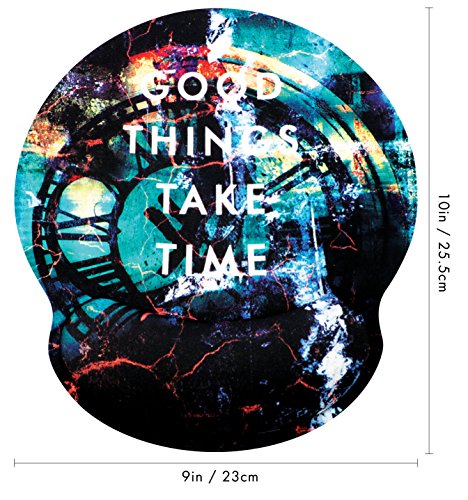 Good Things Take Time Inspirational Quotes Ergonomic Design Mouse Pad with Wrist Rest Hand Support. Non-slip Rubber Backing. Round Large Mousing Area. Precise Tracking. Great or Gaming or Office Work.
