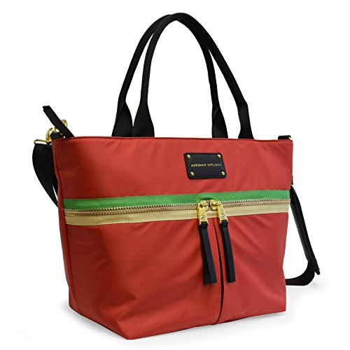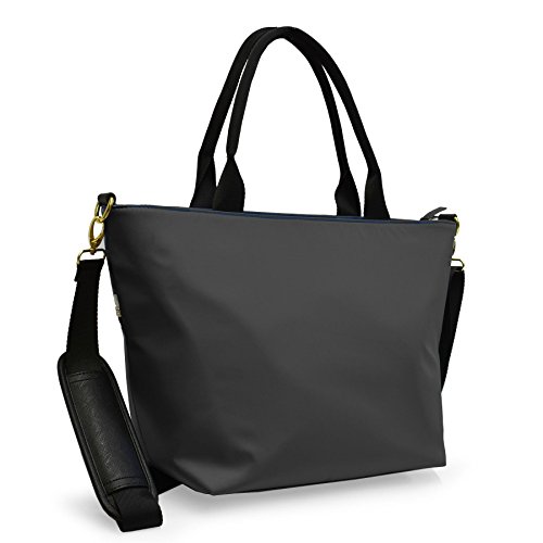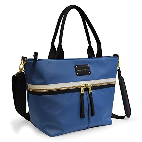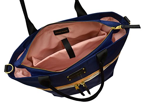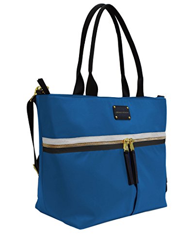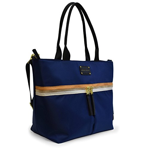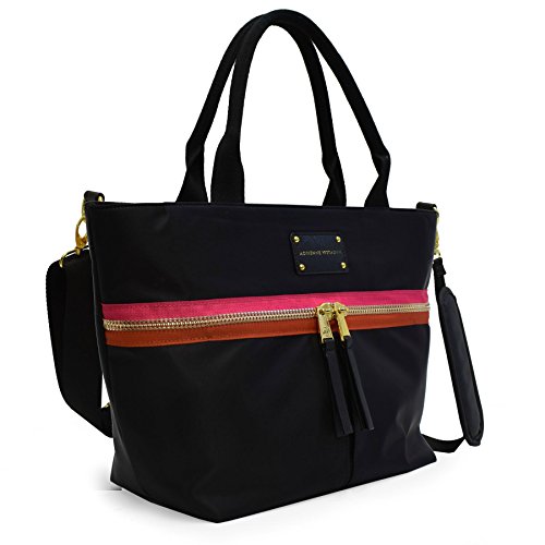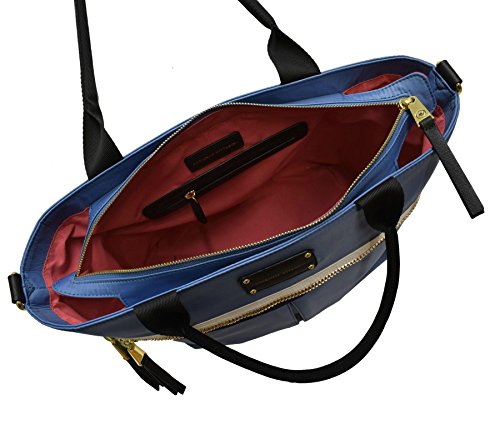 Product Description This trendy tote features contrasting trim and a sturdy nylon fabric. You will love the spacious interior that is large enough to accommodate a 15 in. laptop, exterior and interior zip pockets, and removable shoulder strap which make this bag so functional. 0