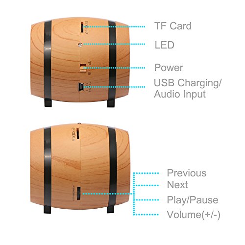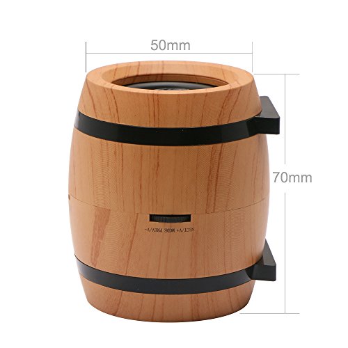 -. Feature : Great for Decoration: Ultra mini beer barrel shape with wood-grain, smooth surface, elegant looks, and it would also be a great decoration for home or office / Easy to Go Anywhere Size: The ITEQ Bluetooth Speaker is only 2*2*2.8 inch and 4.3oz, small enough to hold easily in hand or fit into a pocket, you can enjoy the music anywhere at anytime / Crystal Clear Sound: The sound of the bluetooth speaker is clear and strong, nice mix of bass and treble / Simple Operation in 2 Ways: Control volume and move through tracks directly through your bluetooth-connected devices, or by the multifuntional button of the bluetooth speaker / Universal Compatibility: The ITEQ Bluetooth Speaker is compatible with any bluetooth-enable device such as iPhone, Android, Tablet, MP3, MP4 and more, easy to pair with