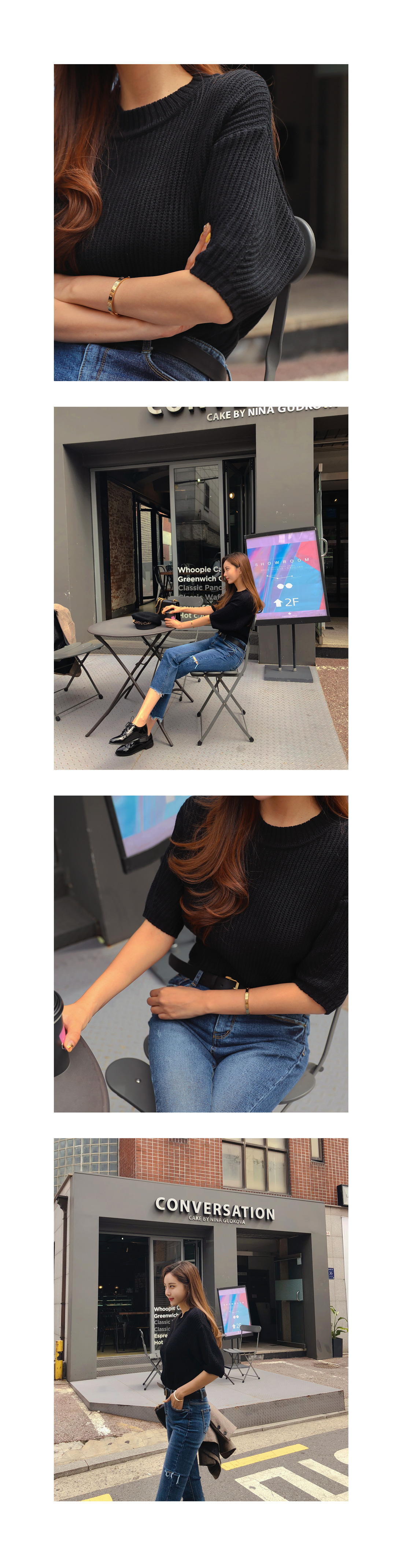 MD COMMENT 캐주얼하게 즐겨입기 좋은 니트탑을 소개할게요.베이직한 라운드 네크라인에 5부 소매기장으로 제작되었구요.낮게 드롭된 숄더라인에 루즈한 핏감으로은근 여리여리한 실루엣을 느낄 수 있어요.네크라인에 소매 밑단에 시보리 짜임이 더해져늘어짐없이 안정감있게 착용이 가능하구요.다양한 두께의 짜임으로 룩에 밋밋함을 덜어주었으며트렌디한 감각을 가져갈 수 있답니다.깔끔한 디자인에 베이직한 컬러감으로 구성되어다양한 하의 아이템과 두루두루 매칭이 좋구요.지금 딱 입기 좋은 두께감의 니트로 단독으로는 물론!아우터 안에 이너로도 활용도가 높아 데일리 아이템으로추천해드려요^^COLOR/SIZE 블랙,와인,아이보리,카키,베이지FREEMODEL FITTING 블랙/FREE