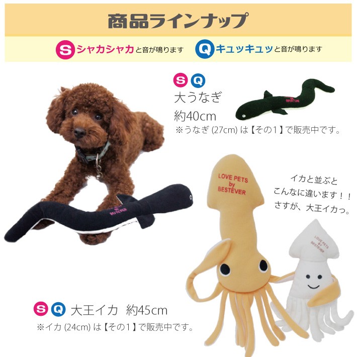 噛むとカシャカシャ、キュッキュッと音がする! ペットトイ ベストエバー その5 全2種 おもちゃ ぬいぐるみ 玩具 イヌ 犬 ペット 音が鳴る イカ うなぎ 大王イカ 大うなぎ ウナギ メール便送料無料