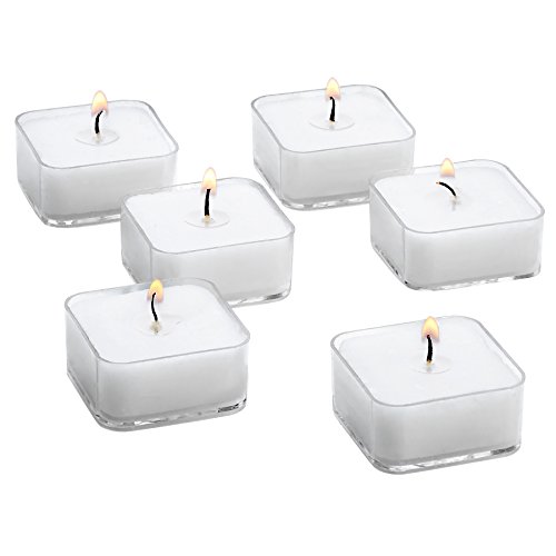 Studio : Light In The Dark Publisher : Light In The Dark Binding : Kitchen Product Description white Square Tea Light Candles Unscented in clear plastic cups set of 36 with a long burn time of 5 Hours !!!! Very Popular, Classic, Clean, Square Tea Light Candles in clear plastic cups set of 36 from Shop A Candle. Unscented Tea Light Candles with 5 Hour burn time each. These same candles are purchased for use in some of the finest stores in the USA. The candles are 0