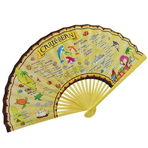 Fan Jumbo Parchment Decorative Caribbean Map Folding Fan Collectible Souvenir and Gift
