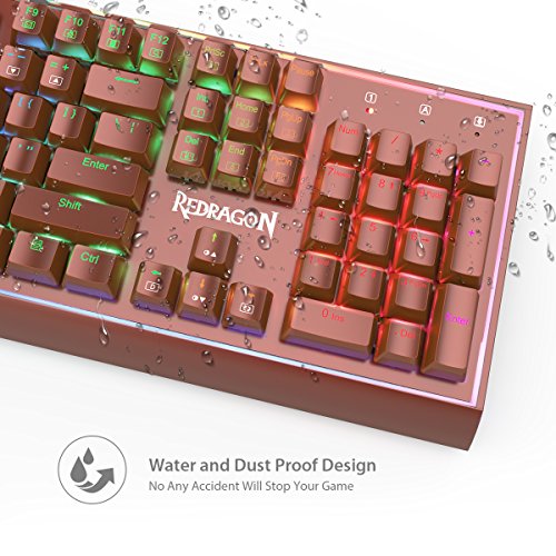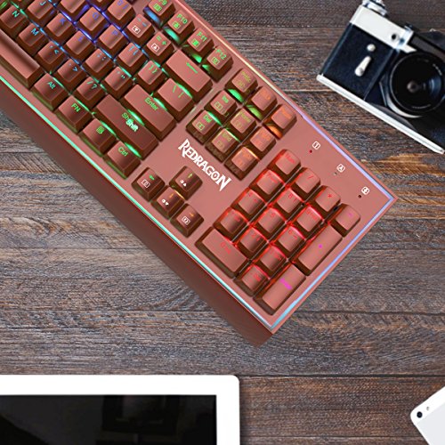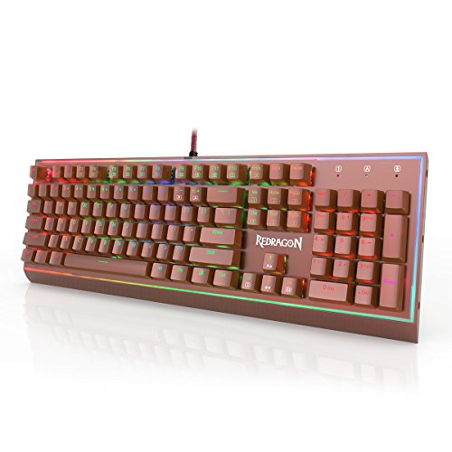 -. Title : Redragon K571 SIVA Mechanical Gaming Keyboard, RGB Backlit, Blue Switches, Solid All Aluminum Construction, Stylish Metallic Brown Electroplated Keys and Base, 104 Standard keys