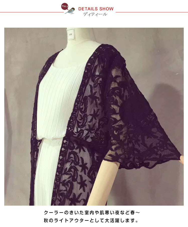 | さらりと軽く羽織れる薄手のレースカーディガンが登場。 女性らしさを演出するために、総レースで仕上げました。 柔らかで肌触りの良いレースを使用しているのも高POINT◎ ヒップラインまですっぽり隠れるロングシルエットにも注目です。 デイリーはもちろん、水着の上などにも着用できる優秀ITEMです。 | |