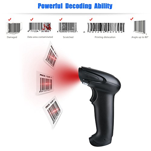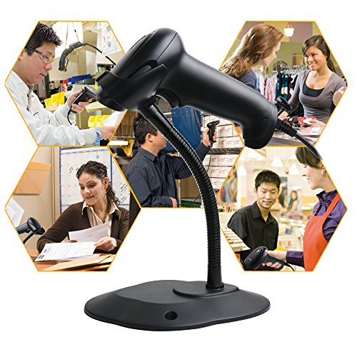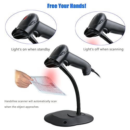 Hands Free Design: Benifits from the 360° roatating stand, you can easily scan the barcodes without holding the bar-code scanner, free your hands, this scanner makes your scanning much more relaxed, even for large number of scanning work in supermarket, warehouse, library, health care, costume store and etc.