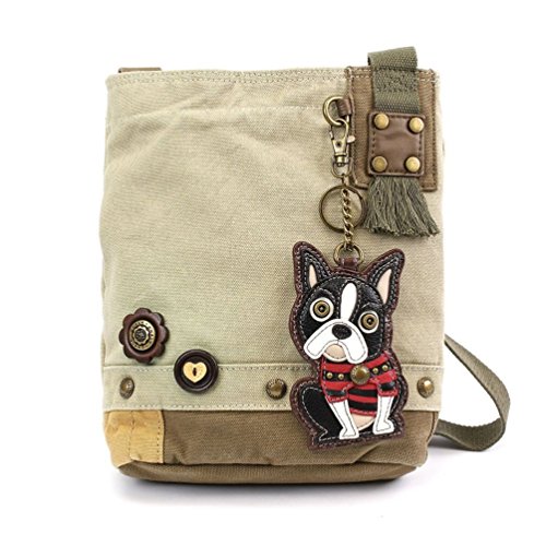 Chala Womens' Canvas Patch Crossbody Handbag "Boston Terrier" - Sand