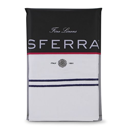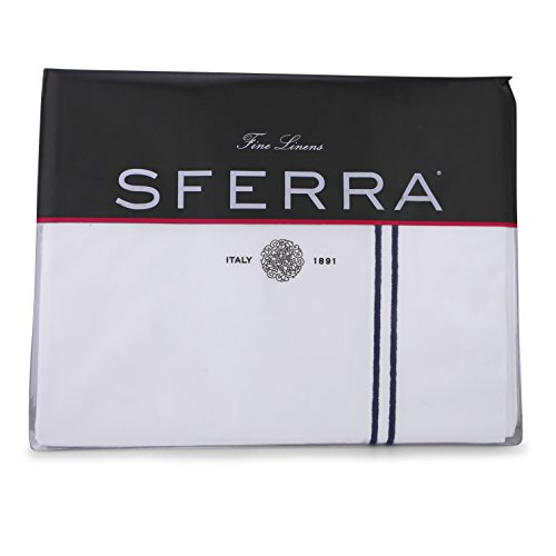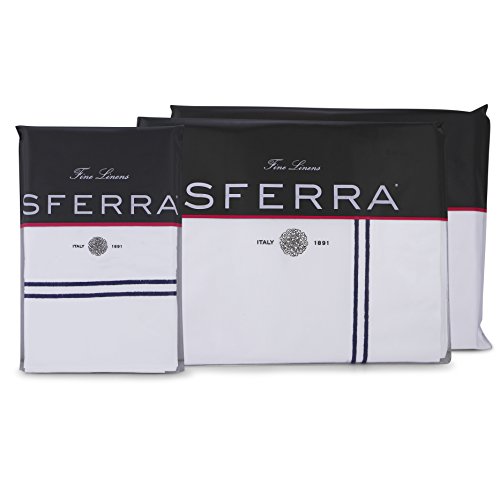 Sferra's Grande Hotel Collection is styled after the sheets that grace the beds of some of the finest hotels in the world. If you have ever wondered why you always sleep so well in a five-star hotel, this may be the answer. These crisp 200TC white sheets are framed in tailored double rows of colored satin stitching. Made in Italy of 100% Italian Egyptian Cotton Percale. NOTE: Bottom Fitted Sheets Do Not Have No Embroidery