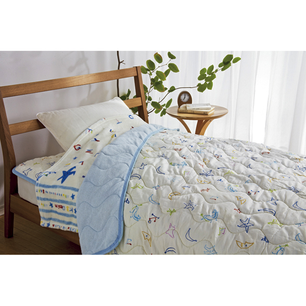 ●黒田征太郎のやさしくあたたかなイラストとストライプを組み合わせたかわいい寝具です。