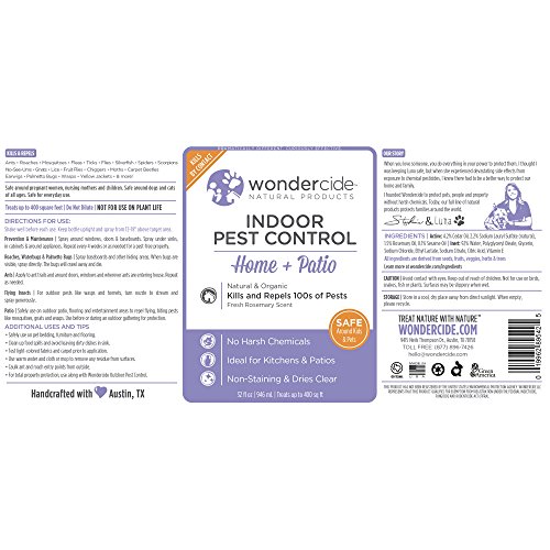 -. Feature : KILLS AND REPELS OVER 100 HOME-INVADING PESTS including ants, roaches, spiders, moths, flies, mosquitoes, scorpions, wasps, silverfish, earwigs, fleas, ticks, mites, and more. / WORKS FAST WITHOUT TOXIC CHEMICALS. KID-SAFE & MOM-APPROVED. Contains NO pyrethrins, pyrethroids or permethrins. Safe for use in kitchens and around food prep - made with natural, food-grade ingredients. Spray & play with no wait time! / NON-STAINING, Spray around perimeter of home, around doors, on baseboards, carpet, furniture, pet bedding, and mattresses. Spray on fabrics, flooring and furniture to kill the full pest life cycle. 32 oz treats 400 sq ft or the perimeter of a 2,000 sq foot home. / ORGANIC & AROMATHERAPEUTIC. Made with organic essential oils. It's uplifting and invigorating! / 100% SATISFACTION GUARANTEED. Naturally-derived, non-toxic, biopesticide pest control spray backed by our money-back happiness guarantee. Made in the USA and never tested on animals!