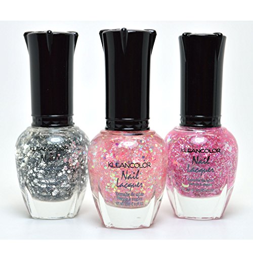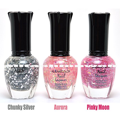 -. Title : 3 KLEANCOLOR NAIL GLITTER POLISH CHUNKY SILVER AURORA PINKY MOON LACQUER + FREE EARRING by Kleancolor