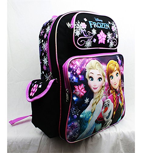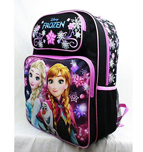 -. Binding : Toy -. Brand : Frozen -. Color : black -. Department : girls -. EAN : 0875598002640 -. Feature : 1 main zippered compartment / 2 front zippered sub compartments / 2 mesh side pockets / Colors: Black and Pink / Dimensions: 12" W x 5" G x 16" H -. IsAdultProduct : 0 -. Label : Accessory Innovations -. Manufacturer : Accessory Innovations -. Model : A08149BK -. MPN : A08149BK -. NumberOfItems : 1 -. PackageQuantity : 1 -. PartNumber : A08149BK -. ProductGroup : Toy -. ProductTypeName : TOYS_AND_GAMES -. Publisher : Accessory Innovations -. Size : large -. Studio : Accessory Innovations -. Title : 3D Frozen Elsa, Anna & Olaf Girls 16" Canvas BLACK School Backpack Book Bag -. UPC : 875598002640