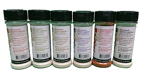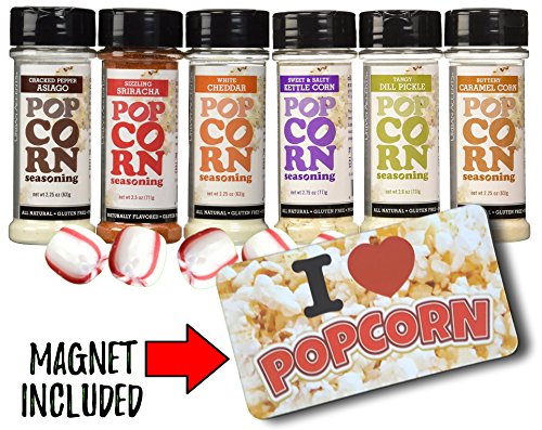 Gourmet Popcorn Seasoning Variety Pack, All Natural (6 Flavors) - Dill Pickle, White Cheddar, Caramel, Kettle Corn, Sriracha, Cracked Pepper Asiago (Magnet...