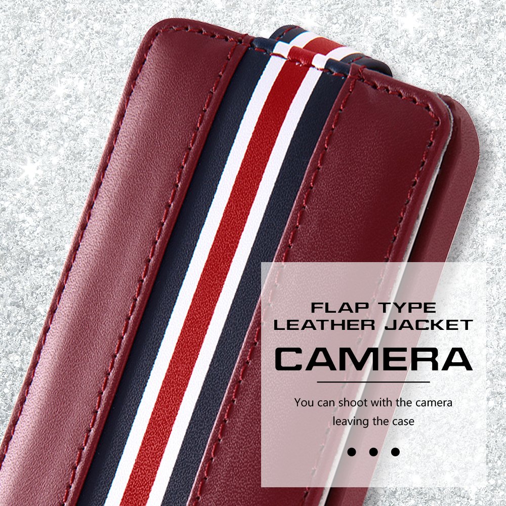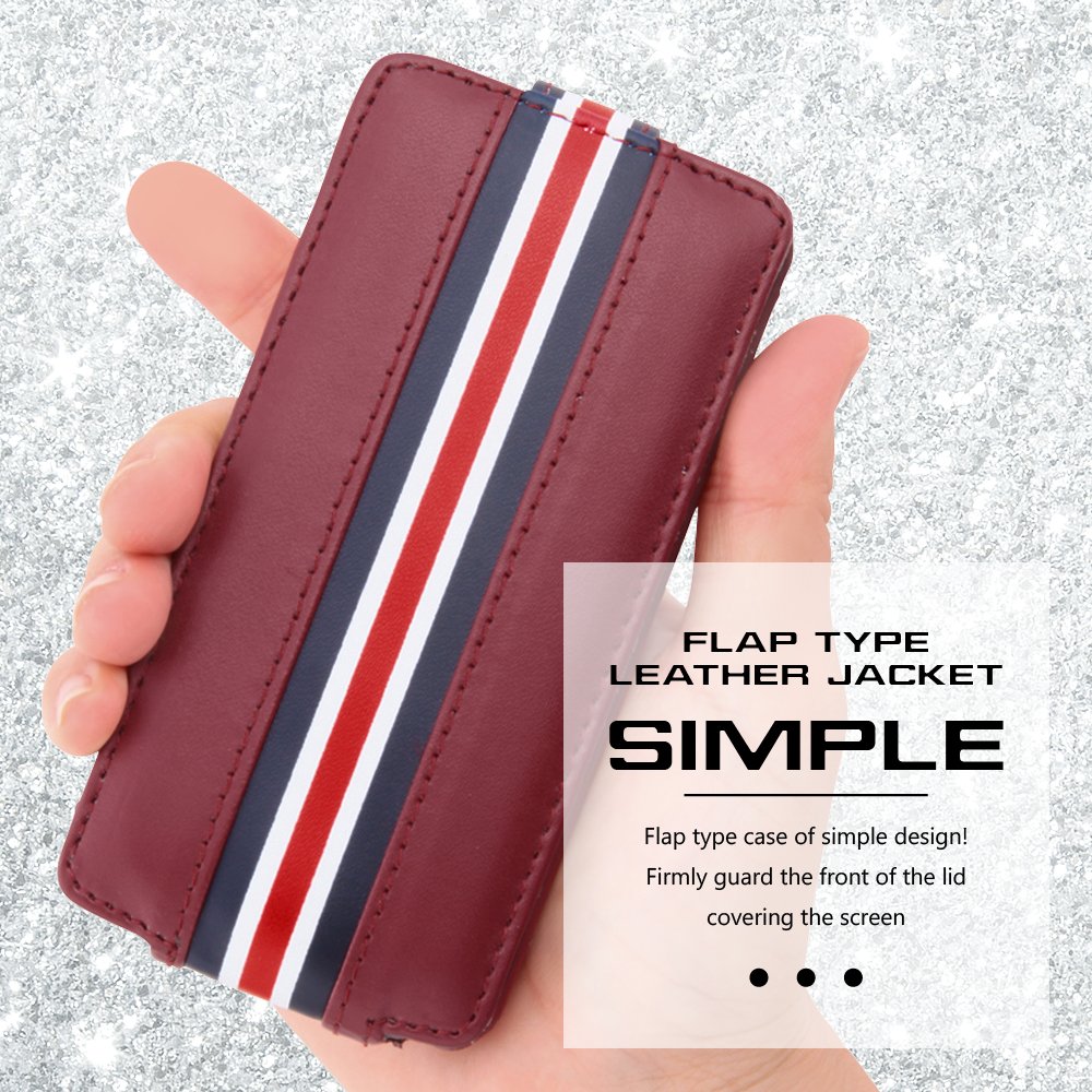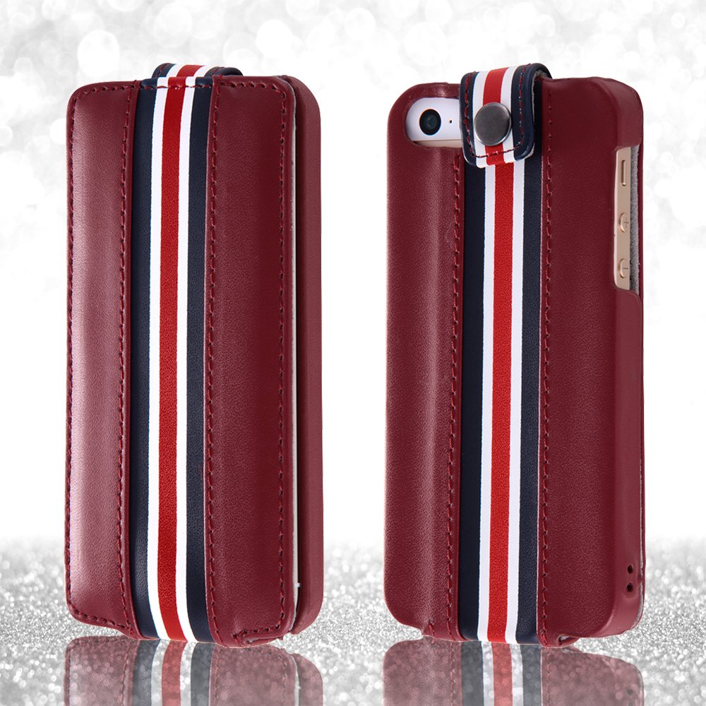Synthetic Leather Flap Style Case for iPhone 5 (Red/ Red Navy Line)