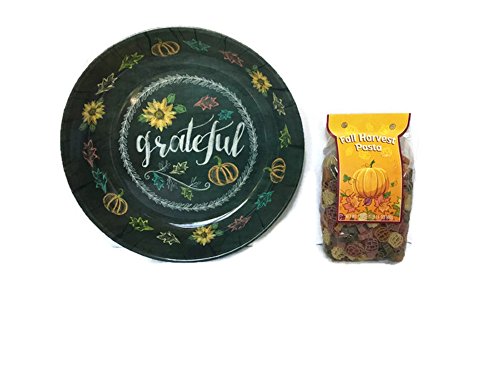 Bundle Includes 1- “Grateful” Autumn Themed Melamine Pasta Serving Bowl 13.75'' in diameter x 2.75" H and 1-1-1lb1.6oz bag fall harvest shaped pasta 1-1lb1.6oz bag