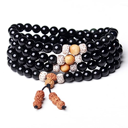 -. Feature : Black Obsidian and Bodhi Seed / 108pcs 6mm bead Black Obsidian / Obsidian is a very protective stone, and is excellent for removing negativity. It is also excellent protection against psychic attacks. / Wrist Mala for Meditation / Comes with beautiful gift box