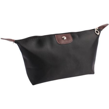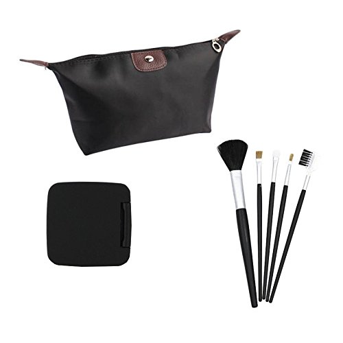 Small Black Makeup Bag for Purse w/ Brushes and a Compact