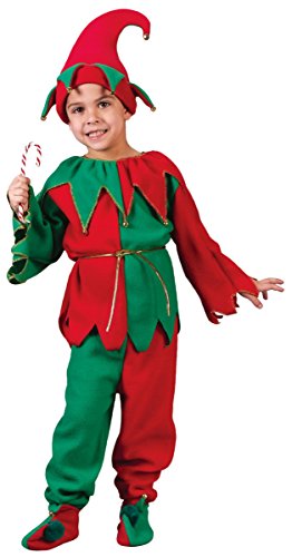 -. Feature : This Christmas elf costume includes a tunic, collar, pants, hat, shoe covers and gold rope belt. / The Christmas elf costume comes in child sizes Medium, Small, Large. / Candy cane is not included with this complete Christmas elf costume for kids.