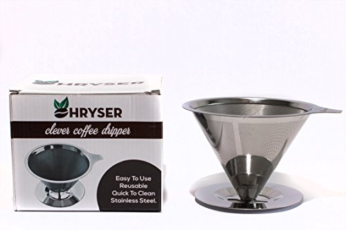 -. Brand : HRYSER -. EAN : 0646223824834 -. Feature : ✅ RISK FREE PURCHASE receive a 1 YEAR WARRANTY & 30 days money BACK GUARANTEED. If you Purchase coffee dripper stainless steel today you will be automatically enrolled in the guaranteed lifetime replacement program. If your coffee dripper is damaged we will replace it for FREE. / ✅ FINE MESH DUAL FILTER - Using the highest quality stainless steel, we've created a precision filter to separate clever coffee grounds from your cup without using a paper filter. This ensures a cleaner, bolder, more delicious taste, while also saving you money. / ✅ SIMPLE TO USE, EASY TO ENJOY - The HRYSER is compact, lightweight and works great at home or at work. The wide base lets it rest comfortably atop your coffee mug, cup or thermos, letting you pour steaming hot water over your grounds and straight into your cup. Pure, clean money. / ✅ SLEEK, ELEGANT DESIGN - When you drink slow roasted or artisan coffee blends you value the taste as much as the experience. The HRYSER rivals the Hario coffee dripper in that it's a beautiful, polished stainless steel kitchen accessory that won't detract from your kitchen décor. / ✅ REUSABLE QUICK RINSE - Unlike Keurig Coffee Brewers or Hario coffee drippers that need to be disassembled, both of which take time to clean efficiently, our pour over coffee dripper can be rinsed quickly by hand and immediately be used again for another flavor. -. Label : HRYSER -. Manufacturer : HRYSER -. ProductGroup : Kitchen -. ProductTypeName : KITCHEN -. Publisher : HRYSER -. Studio : HRYSER -. Title : Pour Over Coffee Dripper by HRYSER - Stainless Steel Clever Dripper with Fine Mesh Strainer - Fresh Brewed Coffee & Tea - Reusable Design, Drip Coffee Cone & Brewer - Make 1-4 Cups of Coffee Maker -. UPC : 646223824834