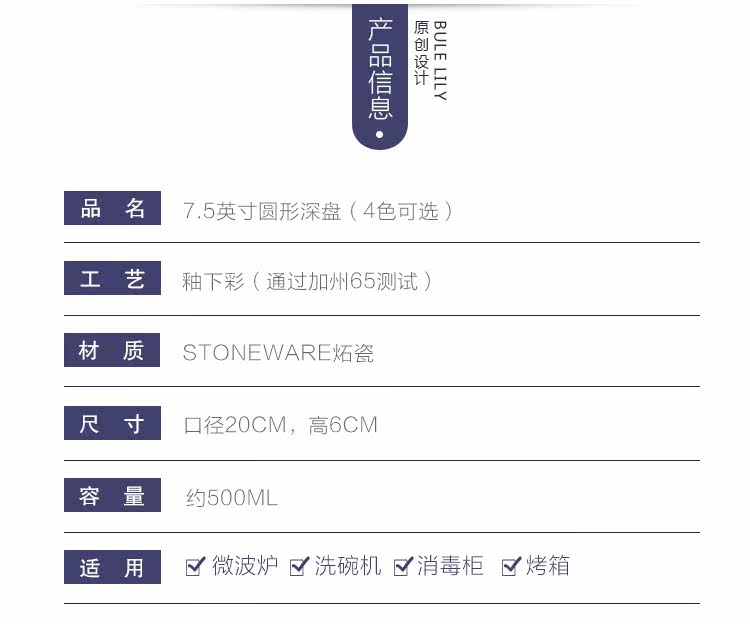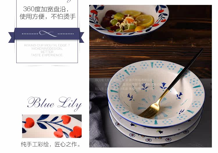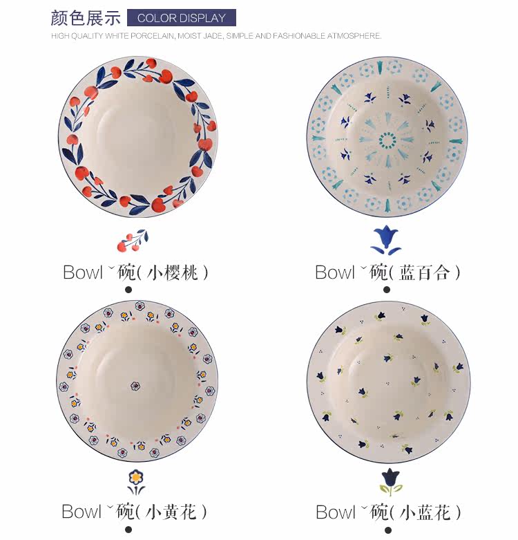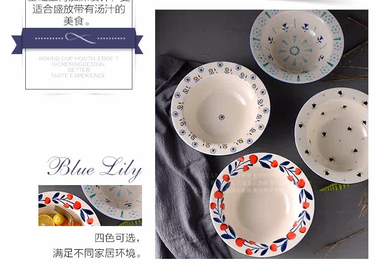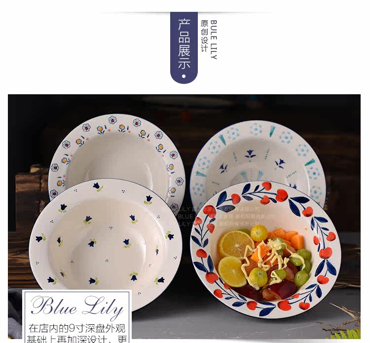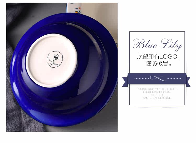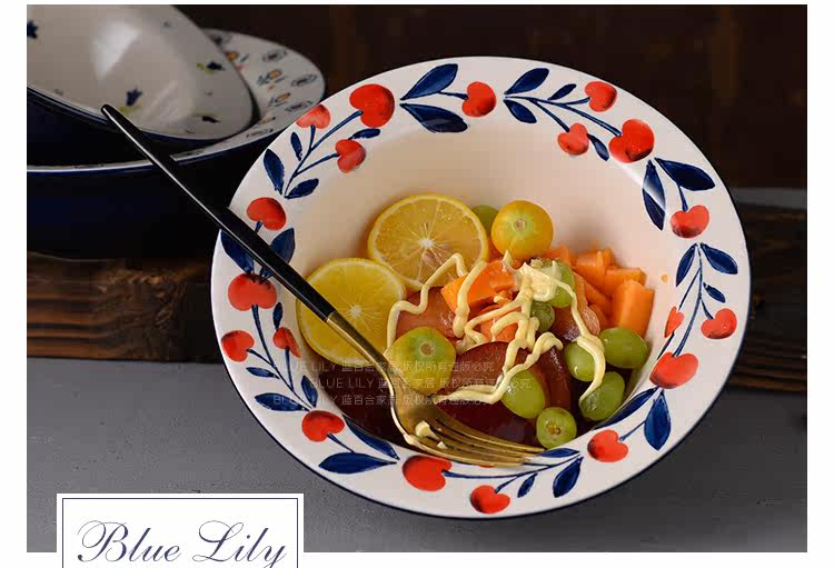 蓝百合家用釉下彩陶瓷水果沙拉碗拉面碗汤碗大碗泡面斗笠碗冒菜碗