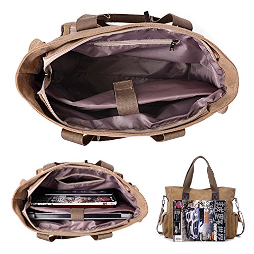 Product Description 100% New Handbag of ToLFE Brand. Item Type: Top-Handle Bags Outer Material: High Quality Canvas Inner Material: Polyester Closure: Zipper Dimension: 14.96*6.30*11.42 inches (L*W*H) Height of Handle: 7.08 inches Occasion: Versatile Inner Pockets: 3 (1 Main Compartments, 1 Tablets pockets, 1 Inner zipper pocket.) Outer Pockets: 1 Zipper Pocket, 2 Front pocket, 2 side pockets Style: Modern Fashion The dimension may be 2 cm/1 Inch in accuracy due to hand measure. ----------------------------About The Return Policy---------------------------- We offer convenient after-sales service: If customer receive broken, damaged or wrong item, customer only need to send a picture to us will be ok, and then we will refund or resend in 24 hours,and customer need not to return it to us. If customer dislike the item, we can offer return, or give several suggestions that we think is better or more convenience. If for other reasons, we encourage our customer contact us, we will response in one business day and do our best to service you.