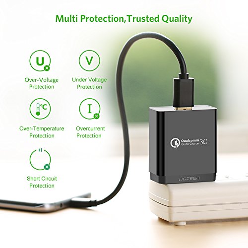SAFEST PROTECTION: UGREEN quick charge 3.0 is certified with CE, FCC, RoHs, ensuring a complete protection including over-voltage, under-voltage,over-heat,over-current and short-circuit.
