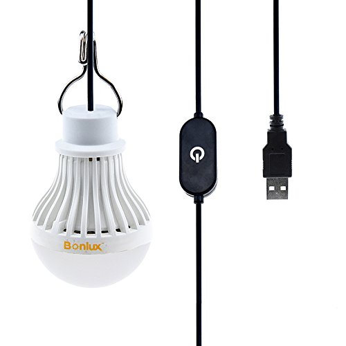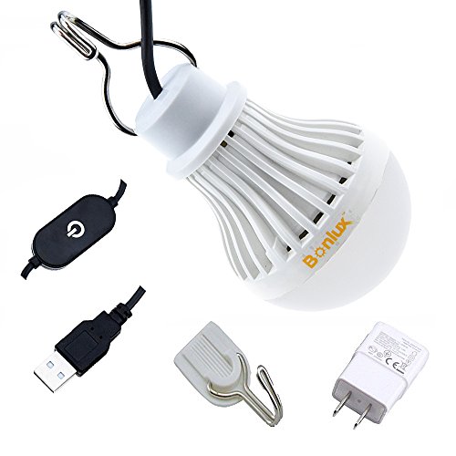 Bonlux Dimmable USB LED Light Bulb with Touch Dimming Switch - 5V 5W Daylight 6000K Portable LED Bulb for Reading Camping Hiking Fishing Backpacking Emergence Light