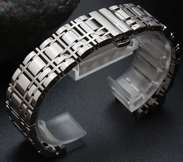 | [해외]20 미리메터 16 미리메터 곡선 엔드 시계 실버 스테인레스 스틸 시계 스트랩 솔리드 링크 팔찌 브랜드 고급 무료 배송 |