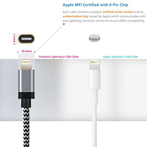 iPhone 7 Charger, 6.6ft Apple MFi Certified, Cambond 8 Pin Braided USB Lightning Cable Cord for iPhone 7 / 7 Plus, iPhone SE, iPhone 6s / 6s Plus / 6 / 6 Plus / 5s / 5c / 5, iPad Air, Mini ( Grey )