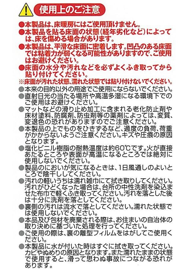 トイレの床の表面を、汚れやキズから守りたい!!そんな願いから生まれた商品です。のりを使用しておりませんので、簡単に貼ってキレイにはがせます。貼りやすいようにシートを2分割してあります。防水ですので、濡れてもサッと拭きとるだけでお手入れラクチン♪ |